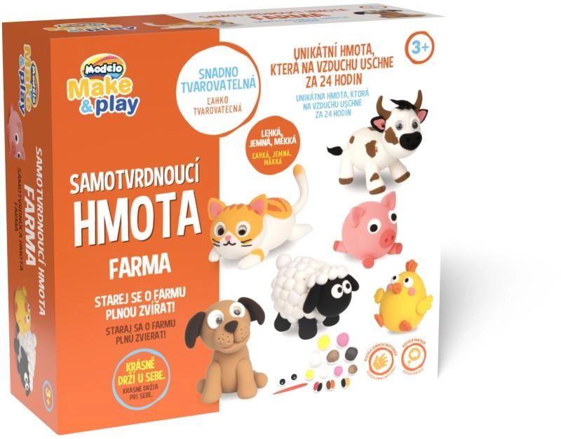 Samotvrdnoucí modelovací hmota – Farma je skvělou volbou pro všechny, kdo milují tvoření. Snadno se tvaruje jako plastelína, ale na vzduchu přirozeně ztvrdne a vytvoří odolné figurky a dekorace. Díky tematickým návodům si během chvíle vytvoříte roztomilá zvířátka z farmy, která potěší děti i dospělé.