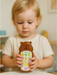 Roztomilý dětský telefon ve tvaru kapybary kombinuje světelné a zvukové efekty, barevná tlačítka a pohodlný popruh na zápěstí. Podporuje smyslový rozvoj, koordinaci ruka–oko a přirozené poznávání světa skrze melodie, zvuky zvířátek a „telefonování na hraní“. Hladký povrch, ergonomický tvar a lehká konstrukce jsou ideální pro malé dětské ruce.