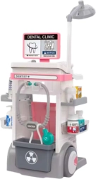 Tento zubařský set v podobě stabilního pojízdného vozíku poskytuje dětem vše, co potřebují k napodobení návštěvy zubní ordinace. Díky světlu v teploměru a bezcitnému operačnímu světlu působí hra autenticky a motivuje k objevování. Model čelistí pomáhá vysvětlit správnou hygienu a překonat obavy z návštěvy zubaře.