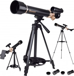 Tento hliníkový teleskop 50/500 je ideální volbou pro první kroky do světa astronomie. Nabízí plynulé ostření, regulaci náklonu a plný otáčivý pohyb 360° pro pohodlné míření. Díky příslušenství v balení můžete ihned pozorovat Měsíc, jasné planety či vzdálené scenérie a zároveň pořizovat snímky pomocí adaptéru na telefon.
