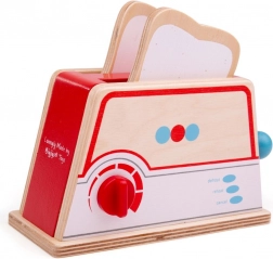 Děti si nastaví „propečení“ otočným voličem a spustí toustování páčkou. Po čase topinky vyskočí – ideální pro nápodobu skutečné přípravy snídaně.