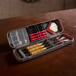 Uspořádané přihrádky udrží šipky, náhradní násadky, křidélka i hroty bezpečně pohromadě. Ideální na přenos i ochranu výbavy.