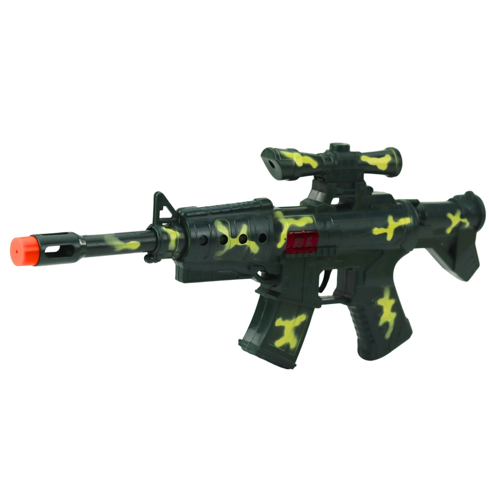 Po stisku spouště se ozve výrazný mechanický efekt výstřelu, který umocní atmosféru hry. Plastová konstrukce s maskáčovými detaily je lehká a bezpečná pro děti.