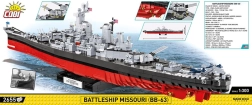 Postavte si legendární bitevní loď USS Missouri (BB-63) v realistickém měřítku 1:300 z 2655 dílků. Tato detailní stavebnice COBI nabízí otáčivé věže, nastavitelné hlavně, pohyblivý kormidelní a šroubový systém a kvalitní trvanlivé potisky. Součástí je prezentační stojánek s cedulkou, takže se model skvěle vyjímá v každé sbírce.