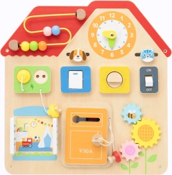 Objevte kouzlo chytré hry s dřevěnou tabulí ve tvaru domku, která děti láká k objevování a procvičování dovedností. Promyšlené prvky jako posuvníky, zámek s klíčkem, zubatá kolečka či labyrint s korálky dělají z tabule univerzální pomůcku pro rozvoj motoriky, trpělivosti a zvídavosti.
