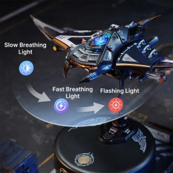 RoboTime 3D mechanická skládačka manta ray přináší do interiéru působivou kombinaci techniky a přírodního půvabu. Realistický šípový vzor a plynulý pohyb ploutví navozují dojem beztížné elegance skutečné manty. Po stisknutí tlačítka se prstní ploutve začnou kývat, ocas jemně kymácí a LED světla se synchronně rozsvěcují.