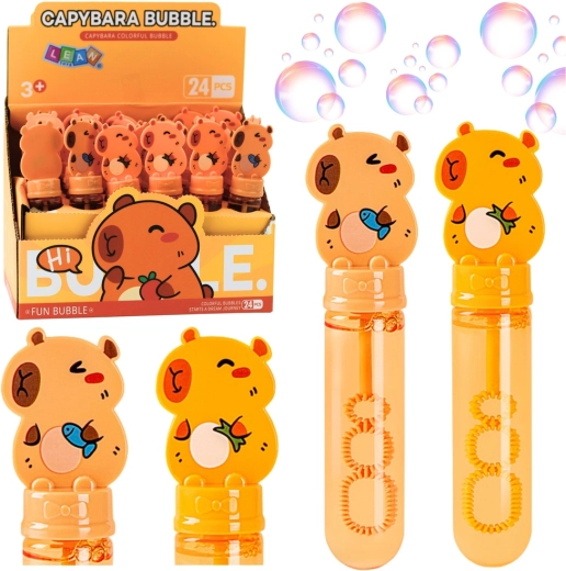 Hledáte jednoduchou a zábavnou hračku pro děti? Bublifuk s roztomilým víčkem ve tvaru kapybary nabízí intenzivní barvy, snadné použití a spoustu radosti při každém fouknutí. Průhledná tuba ukrývá kvalitní roztok, který tvoří velké a odolné bubliny.