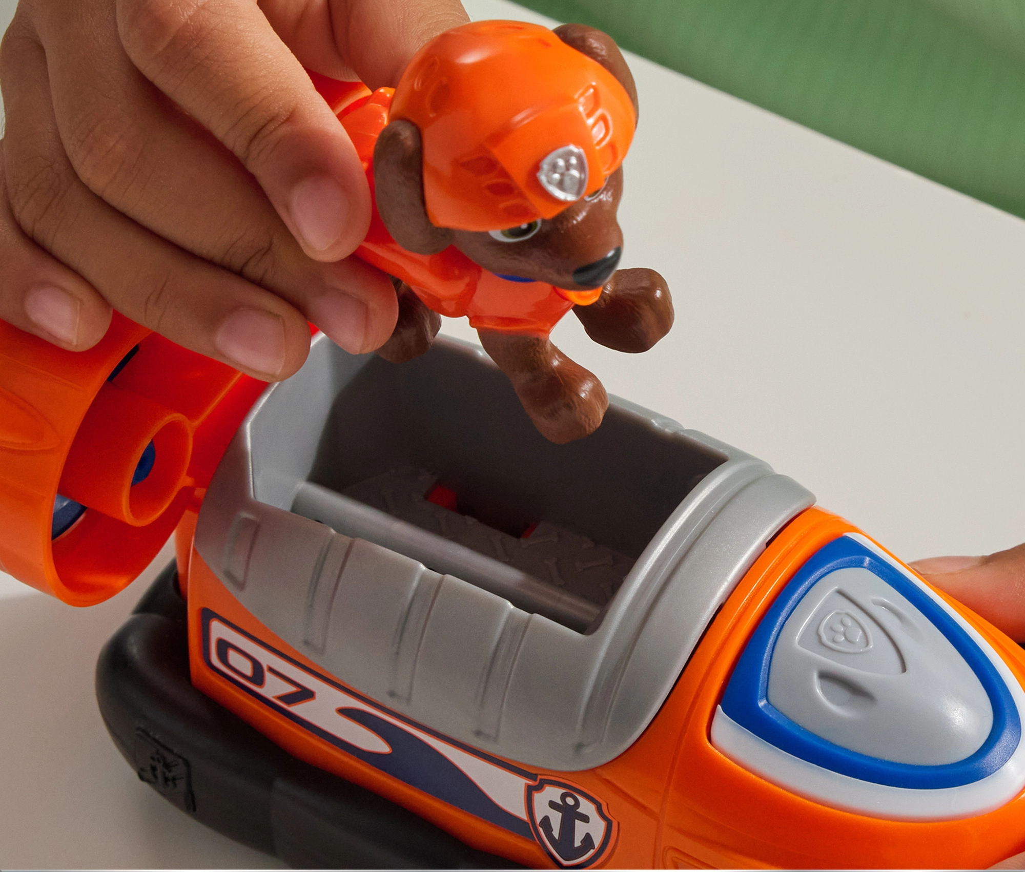 Vydejte se na vodní záchranné mise se štěnětem Zuma, vodním záchranářem z PAW PATROL. Stylový oranžovo‑šedý hovercraft s pohyblivými koly umožní plynulý pohyb po podlaze a věrná figurka Zumy v oranžové výstroji a helmě připraví děti na hodiny kreativní hry.