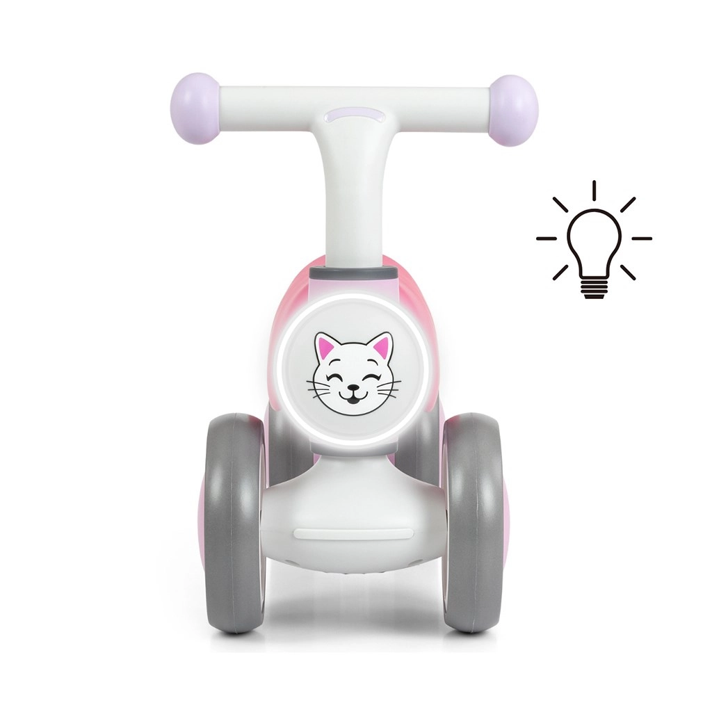 Integrované LED světlo na čele a zvukové efekty (melodie a zvuky zvířat) dělají z jízdy zábavný zážitek a zároveň podporují smyslový rozvoj. Odrážedlo je navrženo pro bezpečné používání v interiéru i na hladkém venkovním povrchu.