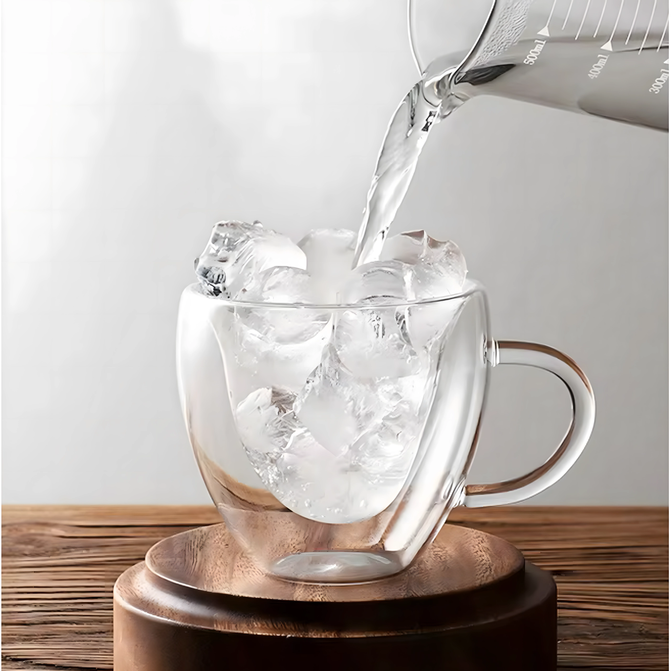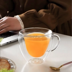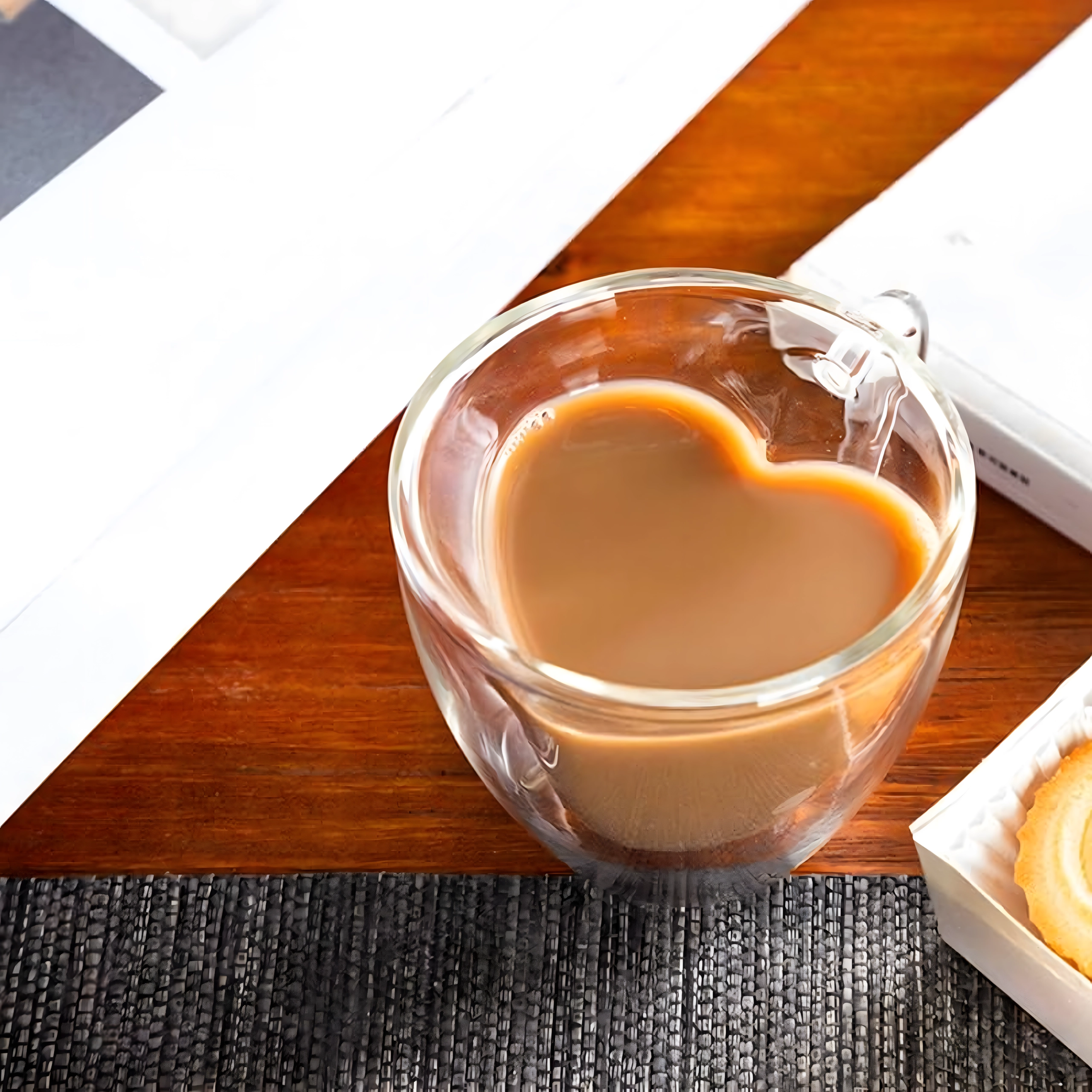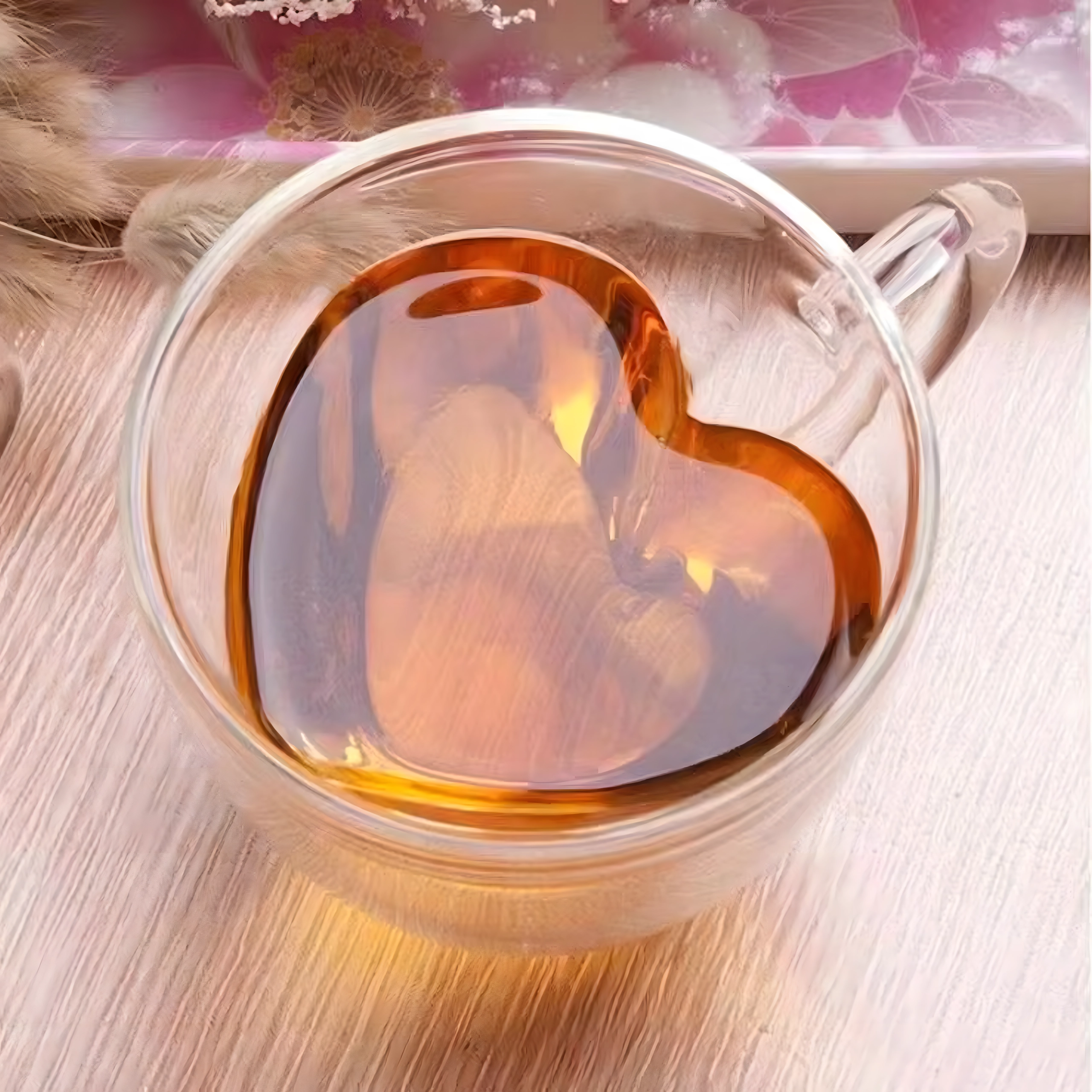 Elegantní skleněný hrnek ve tvaru srdce o objemu 250 ml z odolného borosilikátového skla s dvojitou stěnou pro lepší tepelnou izolaci. Skvěle se hodí na horkou kávu, aromatický čaj i studené nápoje a dezerty. Díky izolační konstrukci nápoj déle udrží teplotu, zatímco vnější stěna zůstává příjemně chladná pro bezpečné držení.