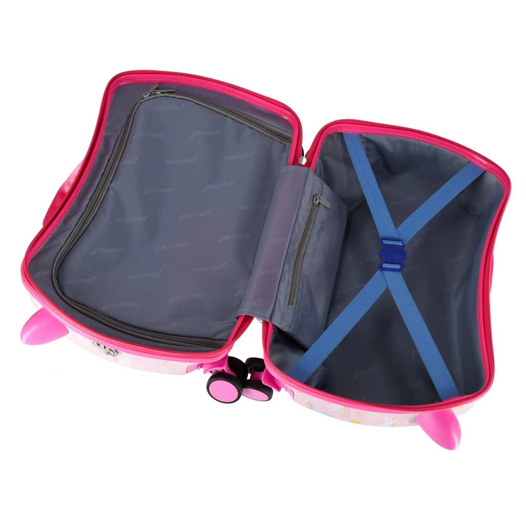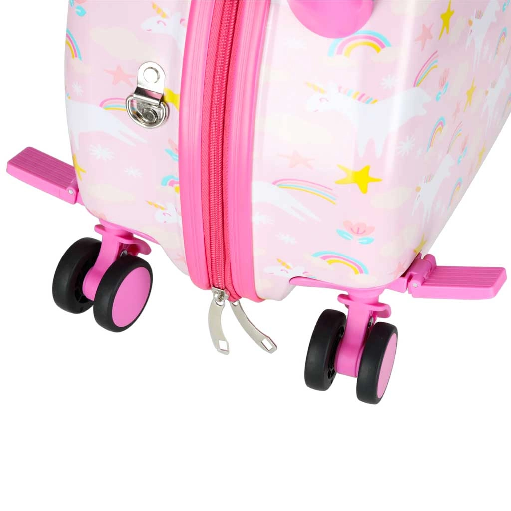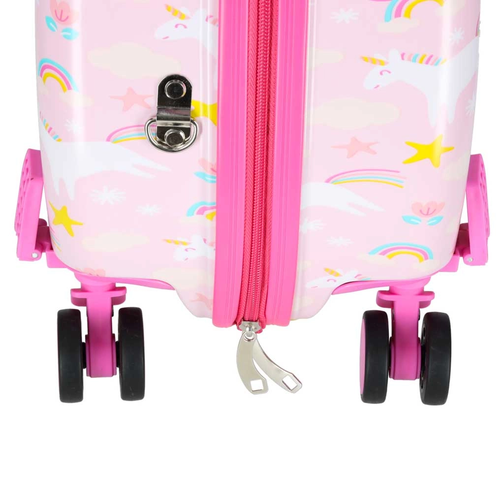 Dopřejte dětem zábavné a bezstarostné cestování. Tento dětský kufr na kolečkách spojuje pohodlí, funkčnost a bajkový design s jednorožci. Díky kabinovým rozměrům se skvěle hodí jako příruční zavazadlo a jeho tvrdý skořepinový plášť chrání obsah před nárazy.