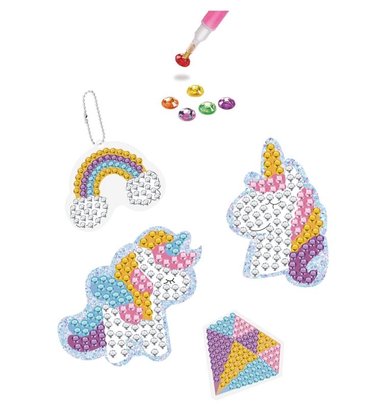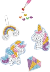 S touto sadou se každý malý tvůrce rázem promění v klenotníka. Stačí postupovat podle předlohy, lepit třpytivé kamínky a během chvilky vzniknou originální přívěsky i samolepky s fantasy motivy. Hotové výtvory lze připnout na batoh, penál nebo je věnovat kamarádům.