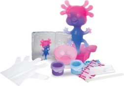 Sada MODELO DIY Axolotl přináší vše, co potřebujete k výrobě jedinečné, gumové a pružné figurky. Na rozdíl od křehkých sádrových odlitků je finální axolotl měkký, mačkatelný a tvarovatelný, takže sluší nejen poličce, ale i vašim rukám jako antistresová hračka.