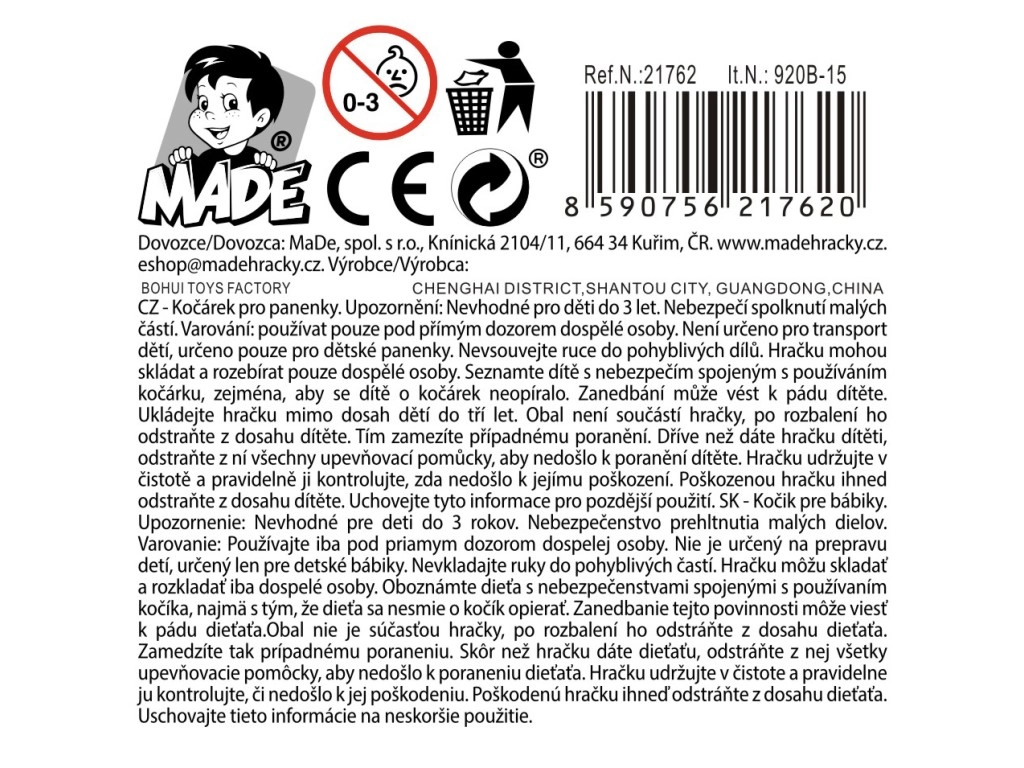 Kočárek podporuje rozvoj fantazie a sociálních dovedností při hře na rodinu. Je lehký, snadno ovladatelný a nevyžaduje baterie, takže je připravený k okamžitému používání doma i venku.
