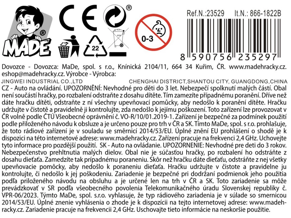 Auto je napájeno běžně dostupnými bateriemi AA, takže je připravené vyrazit na trať kdykoli. Okenní box poslouží jako praktické balení pro uložení i jako pěkný dárek. Hraní s RC autem podporuje rozvoj jemné motoriky, soustředění a koordinace oko–ruka.