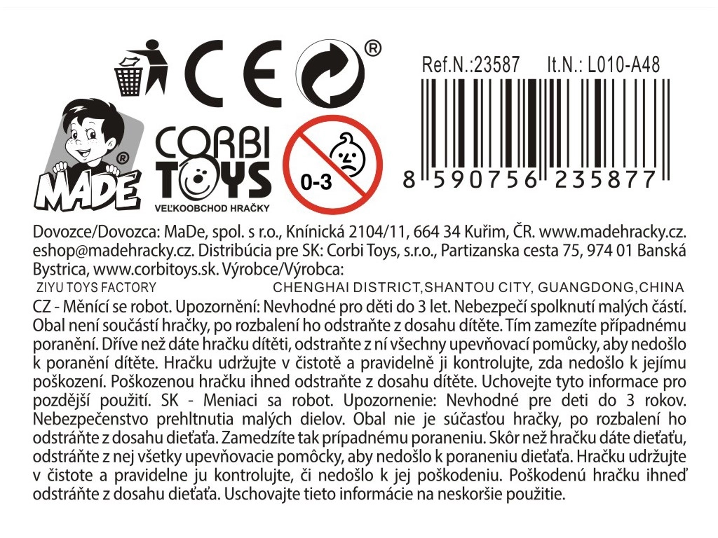 Zábavný robot pro malé inovátory od 3 let přináší hodiny tvořivé hry. Díky odolnému plastovému materiálu a ideální velikosti 22 × 16 × 7 cm se skvěle drží v ruce a podporuje motoriku i fantazii.