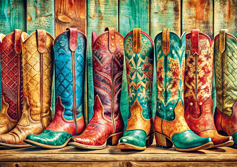 Objevte radost z trpělivé tvorby s puzzle Trefl s motivem pestrobarevných kovbojských bot. Díky 1000 precizně vyřezaným dílkům se můžete těšit na propracovaný obraz s výraznými barvami a vysokou ostrostí tisku. Součástí balení je plakát, který vám pomůže při orientaci a urychlí skládání.
