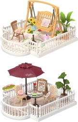 Toto 3D rozšíření je navrženo pro miniatury domečků a je kompatibilní se všemi modely DW68. Díky precizně vyřezaným dílkům z dřeva, plastu a papíru sestavíte působivou terasu s houpačkou, květinami a doplňky, která obohatí váš mini svět o nový prostor pro odpočinek a vystavení.