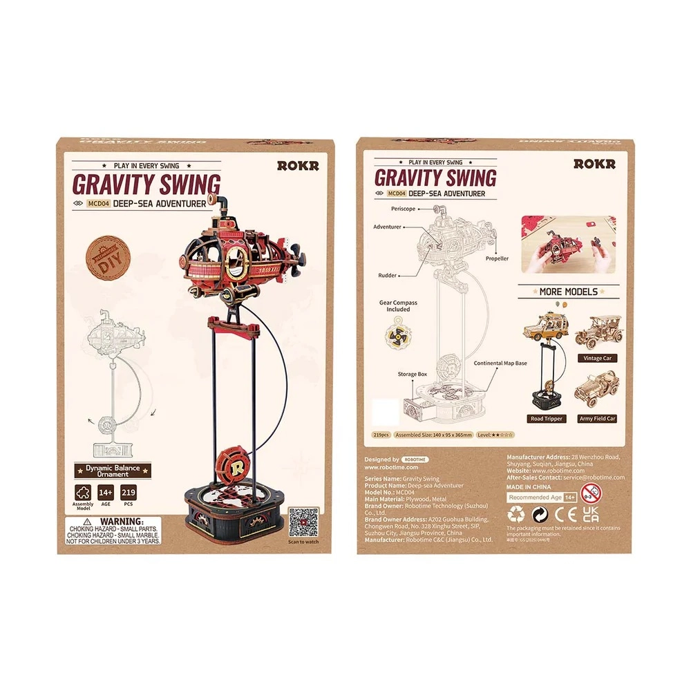 Objevte kouzlo pohybu s jedinečnou 3D skládačkou ponorky s kyvadlem od RoboTime. Tento model kombinuje chytrý mechanický design, gravitací poháněné kyvadlo a detailní zpracování – od periskopu a vrtule po retro vzhled inspirovaný Julesem Vernem. Bez lepidla, s přesně vyřezanými dílky, je to skvělá zábava pro děti i dospělé a zároveň stylová dekorace do interiéru.