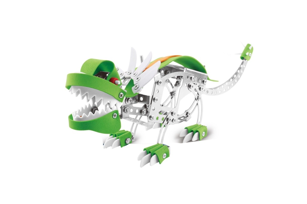 Objevte zábavnou výzvu pro malé i velké konstruktéry: kovová stavebnice dinosaura Styracosaurus s 192 dílky. Kombinuje kovové prvky s plastovými doplňky a spojuje se pomocí šroubků a matiček pro stabilní, realistický model. Stavění je jednoduché, zábavné a zároveň podnětné, ideální pro rozvoj trpělivosti, jemné motoriky a technického myšlení.