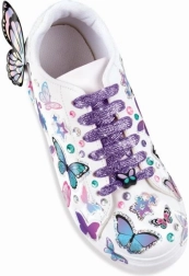 Dočasné tetování pro vaše boty. Dodejte své obuvy šmrnc pomocí dekorativních samolepek. Přidejte jich jen trochu nebo hodně. Proměňte své boty znovu a znovu. Zahrnuje korálkové přívěsky a tkaničky do bot. Přebytečné množství odstraňte teplou vodou. Věk od 8+.