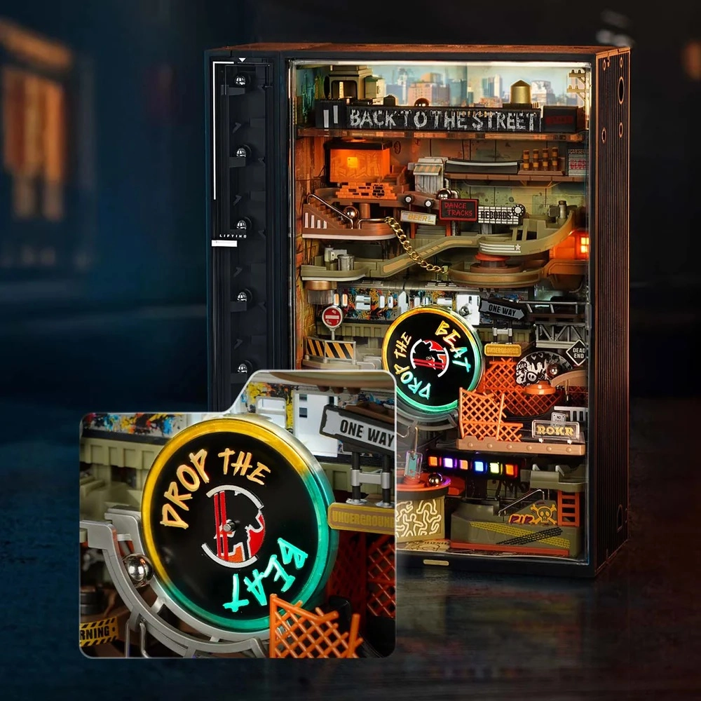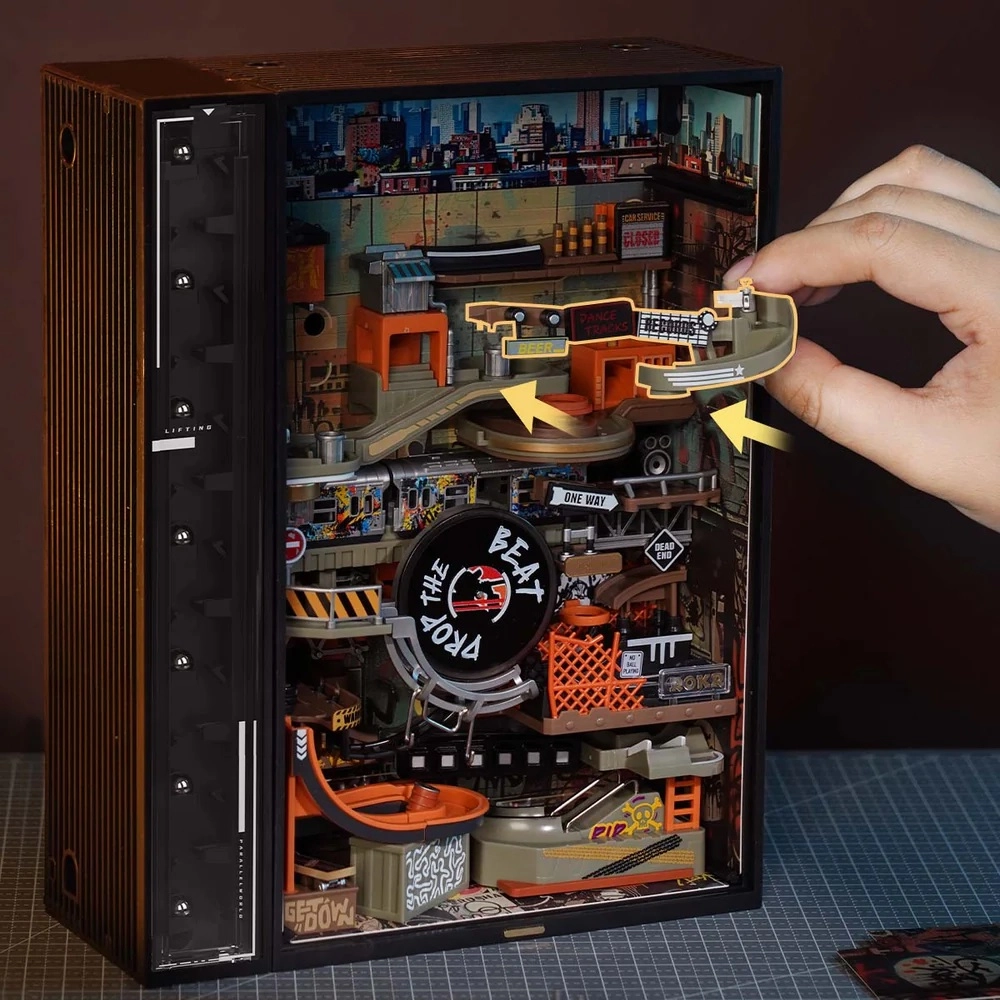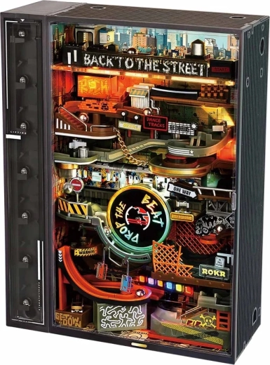 Miniaturní panorama pulzující hip‑hopové ulice přináší plynulý pohyb kuliček na dráze dlouhé 233 cm, podtržený dynamickým neonovým LED osvětlením. Díky účinnému motoru s vysokým točivým momentem se kuličky spolehlivě vracejí pomocí automatického výtahu, takže si užijete nepřetržitou podívanou.