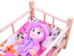 - Dřevěná postýlka, polštářek, deka (panenka není součástí)
