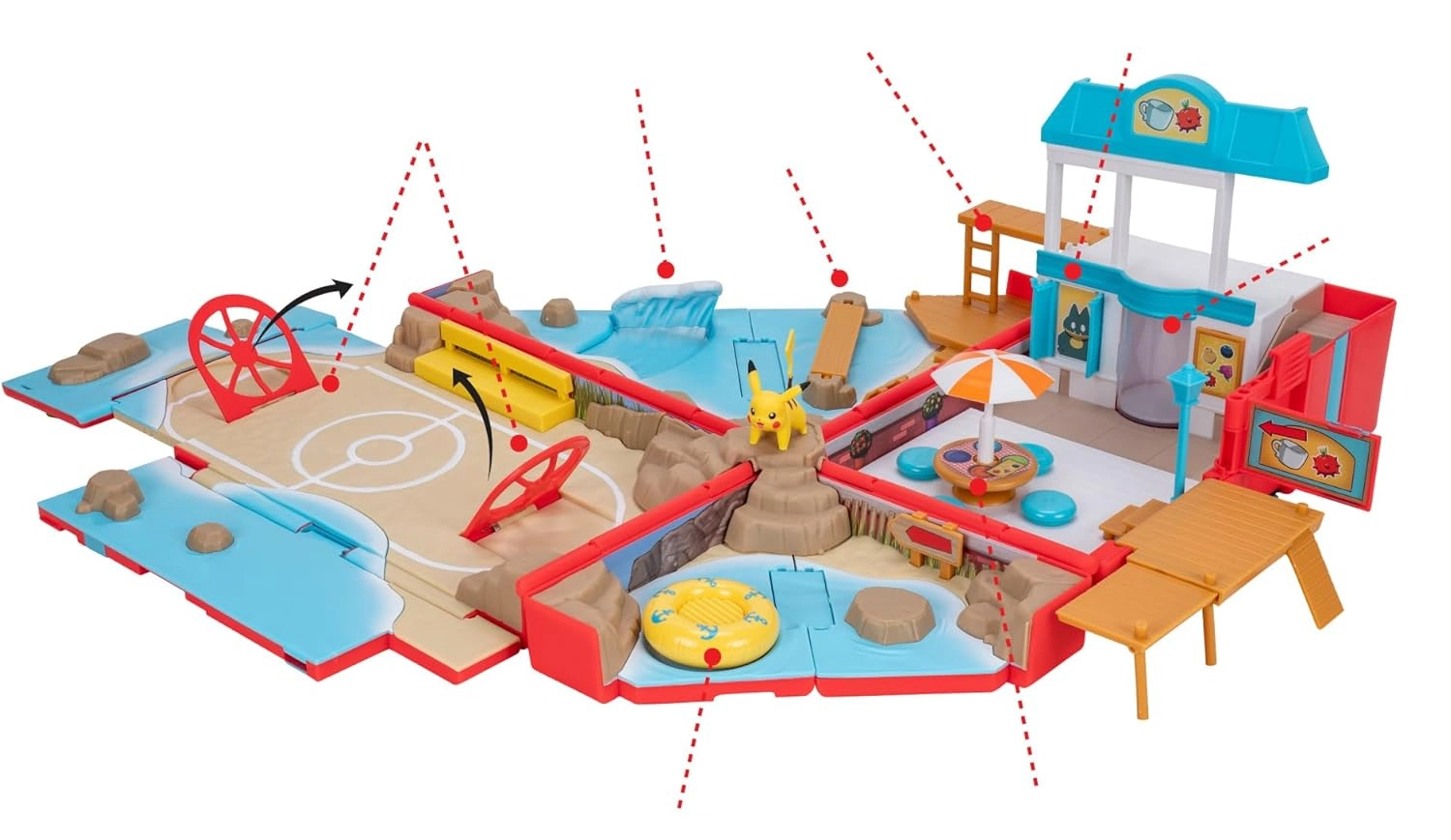 Oficiálně licencovaný produkt od Jazwares potěší detailním zpracováním a kompatibilitou s dalšími bojovými figurkami Pokémon. Děti si mohou vytvářet vlastní příběhy s oblíbeným hrdinou PIKACHU a objevovat nové scénky na pláži.