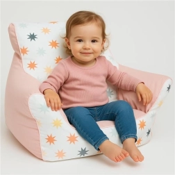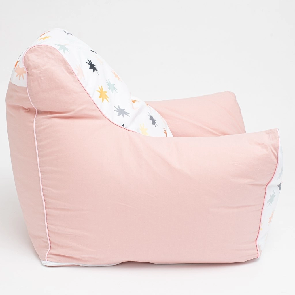 Vrchní potah ze 100% bavlny je příjemný na dotek, má zip pro snadné sejmutí a praní a doplňuje jej hravý potisk. Křesílko je ideální pro čtení, sledování pohádek nebo klidný odpočinek a elegantně zapadne do růžově laděného interiéru.