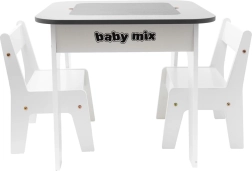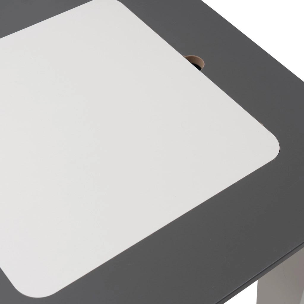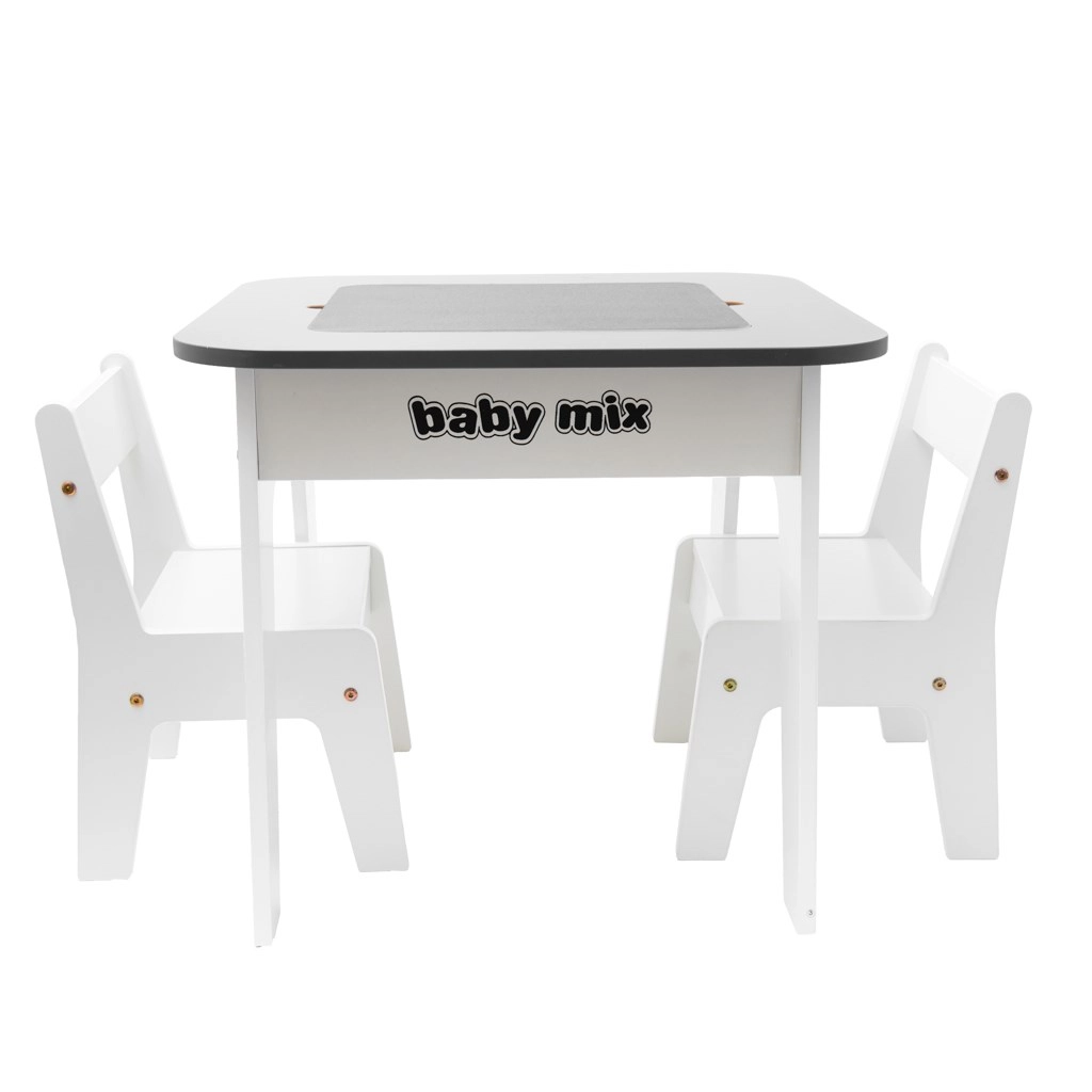 Sada dětského stolu a dvou židlí BABY MIX Leaf Grey je navržena pro maximální pohodlí a pořádek při hraní i tvoření. Odnímatelná stolová deska ukrývá praktický úložný prostor na pastelky, papír, drobné hračky či stavebnice – vše je tak vždy po ruce a pracovní plocha zůstává přehledná.