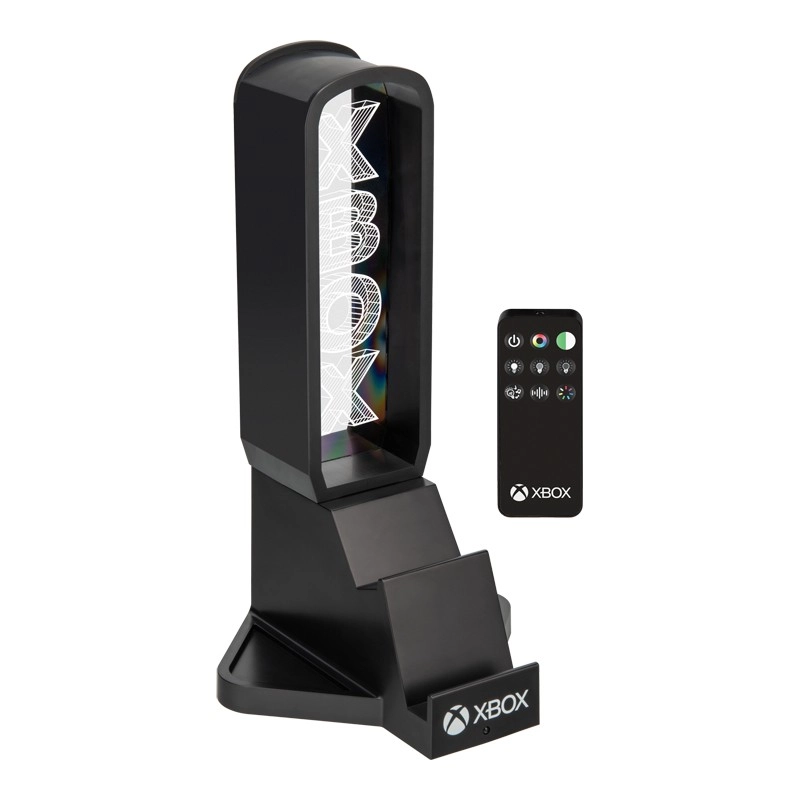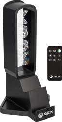 Stylový herní stojan pro XBOX s výškou 30 cm přináší LED osvětlení s několika režimy, praktický držák na sluchátka a telefon a 2× USB‑C porty pro nabíjení příslušenství. Ovládání je pohodlné pomocí dálkového ovladače, napájení zajišťuje USB kabel v balení.