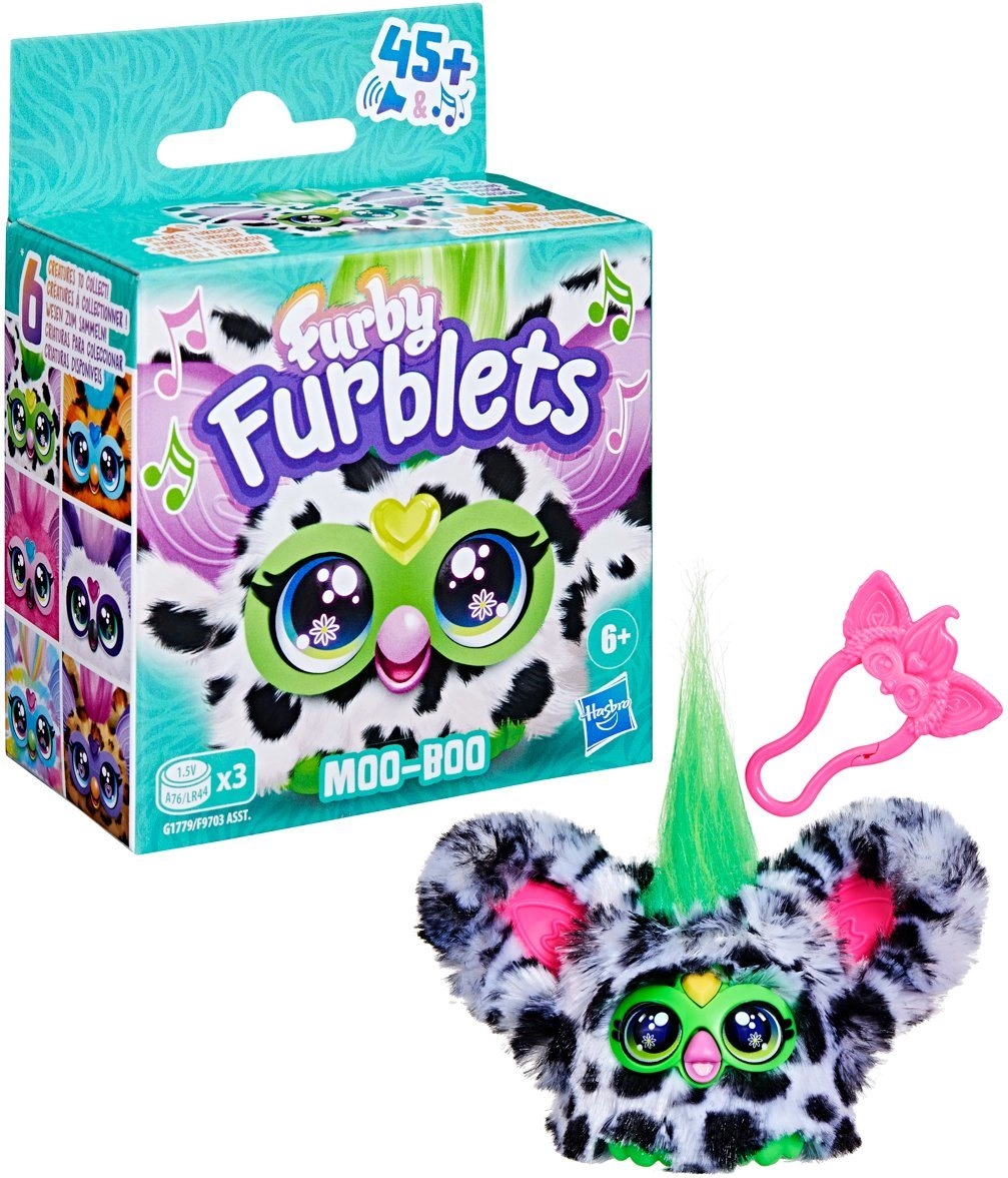 Furblet Moo-Boo si skvěle rozumí s dalšími Furblety i s velkou hračkou FURBY – společně zpívají a harmonizují, takže zábava nikdy nekončí. Díky praktickému klipu ho snadno připnete na batoh nebo tašku, takže je vždy po ruce na výletech, ve škole i doma.