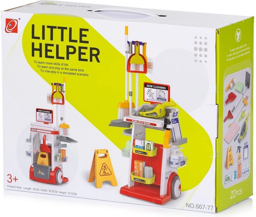 Podpořte děti v péči o domácnost pomocí zábavného úklidového vozíku s funkčním, realisticky vyhlížejícím vysavačem. Set je navržený tak, aby byl přehledný, snadno ovladatelný a motivoval děti k napodobování dospělých při každodenních činnostech. Díky bohatému příslušenství mohou malí pomocníci vytvářet vlastní scénáře a učit se udržovat pořádek hravou formou.