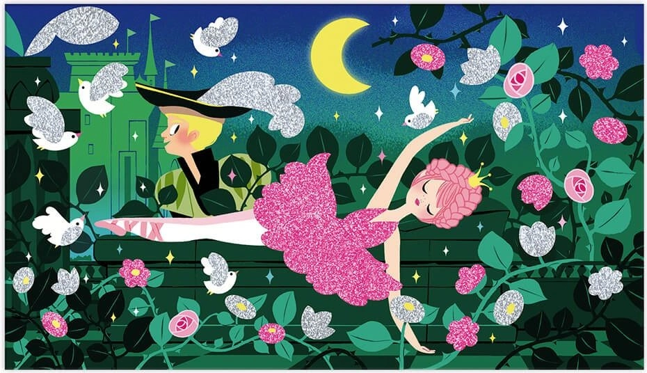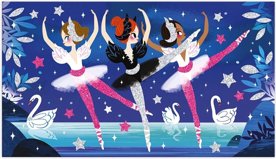 Vytvořte si kouzelné baletní motivy z barevného písku! Tato kreativní sada JANOD umožní dětem snadno tvořit třpytivé obrázky pomocí samolepicích ploch a špachtle. Jednoduchý postup, třpytivý efekt a rozvoj představivosti i jemné motoriky dělají z této sady skvělou volbu pro malé tvůrce od 6 let.