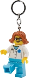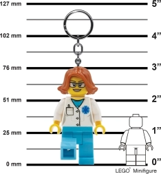 Tato svítící klíčenka LEGO přináší legendární vzhled minifigurek v roli sympatické doktorky – s bílým pláštěm, modrými nohavicemi a výraznými detaily. Díky integrované LED diodě v noze minifigurky rychle nasvítíte klíčovou dírku, zip batohu nebo obsah tašky. Ovládání je jednoduché a intuitivní, klíčenka je lehká a přitom dostatečně odolná pro každodenní používání.