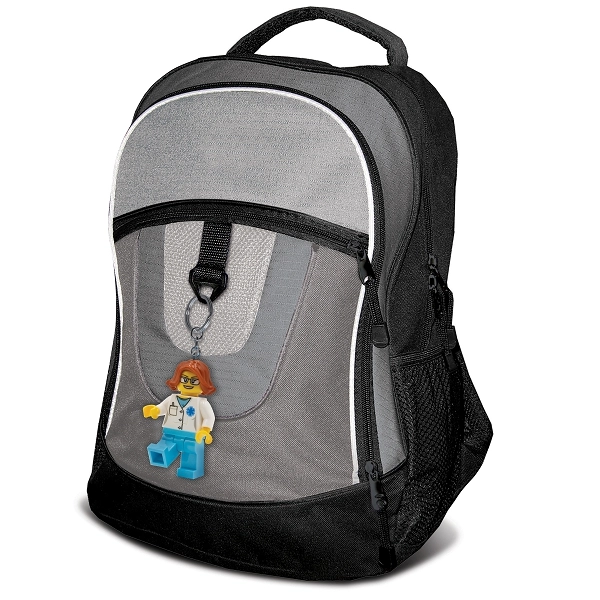 Integrovaná LED v noze minifigurky spolehlivě prosvítí klíčovou dírku i tmavý interiér tašky. Praktické řešení na každý den.