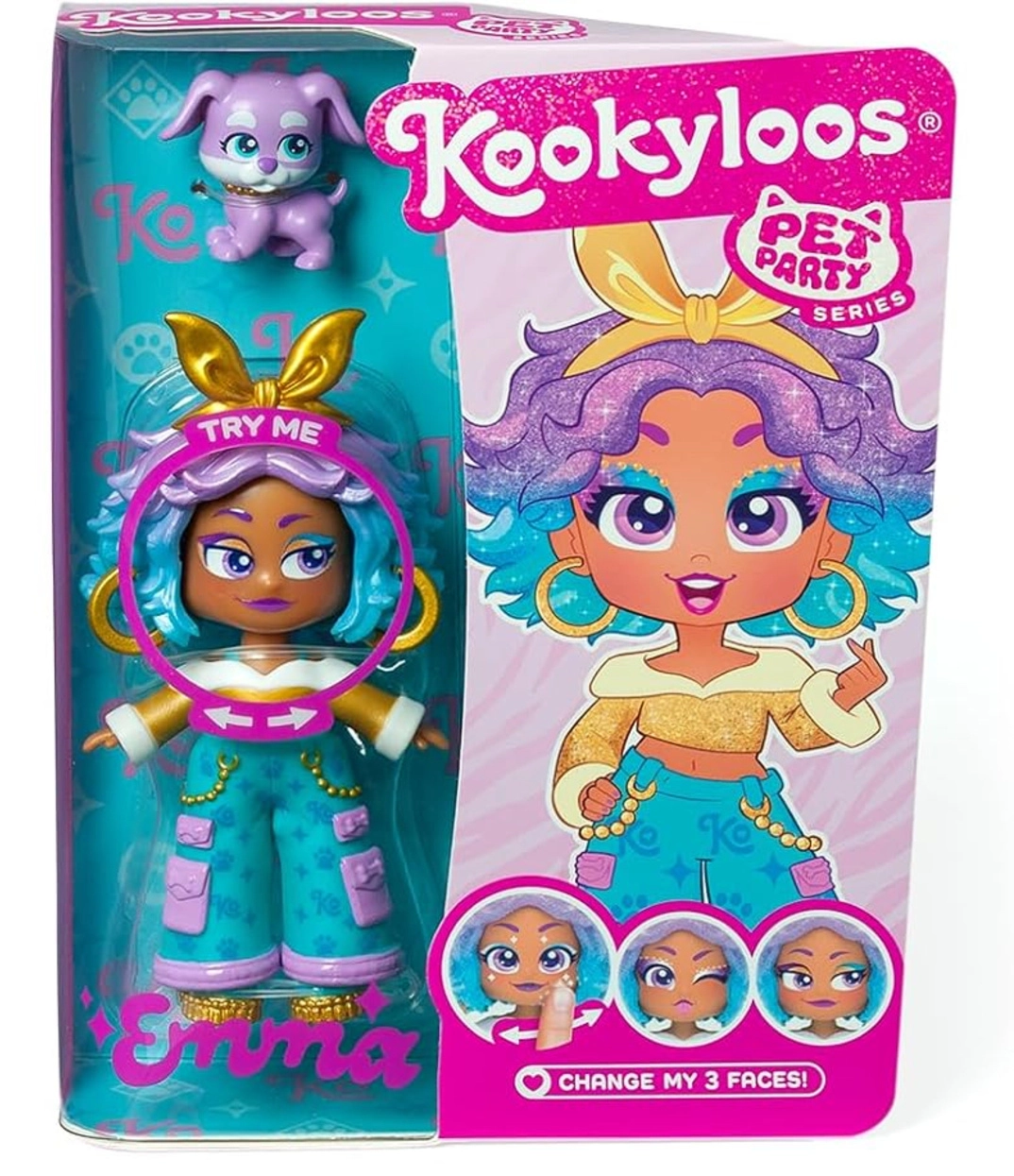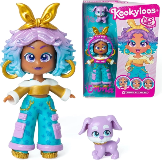 Objevte svět KookyLoos se sběratelskou figurkou Emma – Pet Party. Figurka má charakteristický outfit, moderní účes a doplňky ladící s tématem série. Po pootočení hlavičky získá Emma tři různé mimiky, takže můžete vyjadřovat emoce a vytvářet vlastní příběhy.