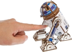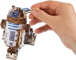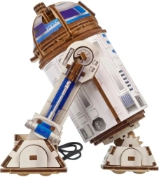 Legendární droid R2‑D2 ožívá v dřevěném modelu, který věrně zachycuje ikonický design ze světa STAR WARS. Díky natahovacímu mechanismu se droid po aktivaci pákou „start/stop“ skutečně rozjede a předvede plynulý pohyb, zatímco LED projektor ukáže barevné scény z galaxie daleko, předaleko. Diapozitivy jsou bezpečně uložené v těle droida a snadno se mění přiloženým nástrojem.