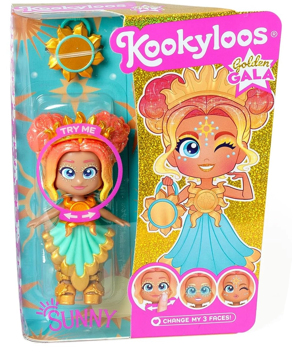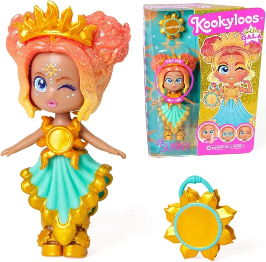 Figurka KookyLoos Sunny Golden Gala přináší kombinaci módního vzhledu a hravé expresivity. Otočením hlavičky snadno změníte 3 různé výrazy obličeje, takže si děti užijí ještě více zábavy a příběhů. Elegantní šaty, účes a doplňky jsou laděny do stylu slavnostní gala události.