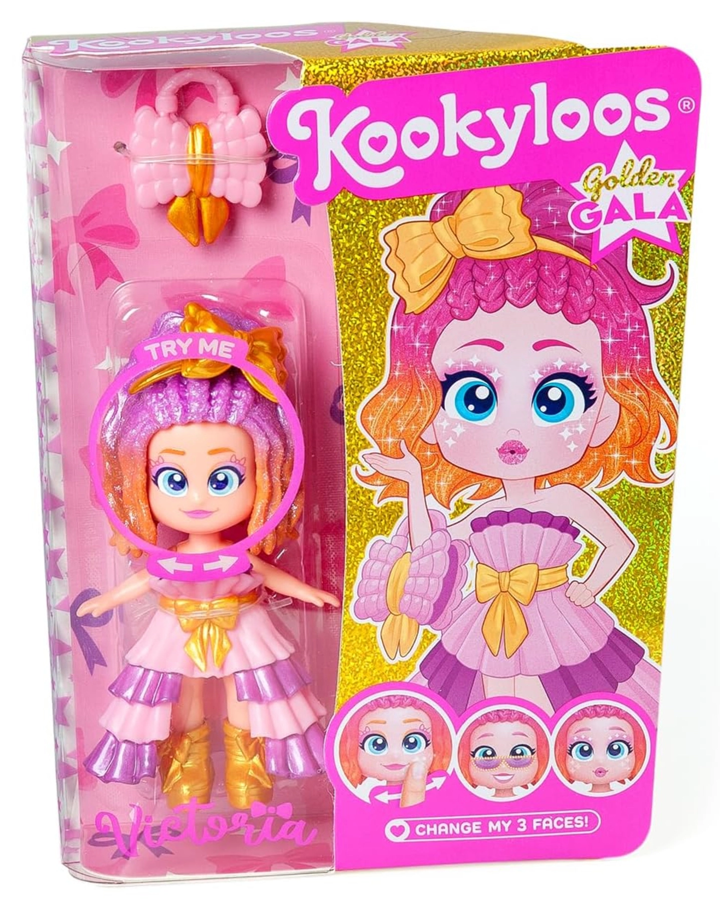 Figurka KookyLoos Victoria Golden Gala kombinuje módní styl, výraznou osobnost a precizně zpracované detaily. Otočením hlavičky snadno změníte 3 různé mimiky, což rozšiřuje možnosti hry, vyprávění příběhů i vystavení ve sbírce.