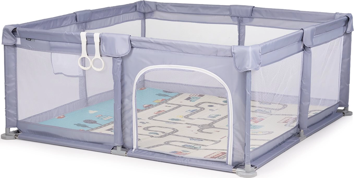 Praktická a bezpečná dětská ohrádka pro každodenní hraní i odpočinek. Nabízí prostorný čtvercový design, zipové boční dvířka pro snadný vstup, prodyšné síťované panely a zesílený rám s měkkým polstrováním. Součástí jsou 2 držací kroužky pro trénink vstávání. Splňuje normu EN 12227:2010.