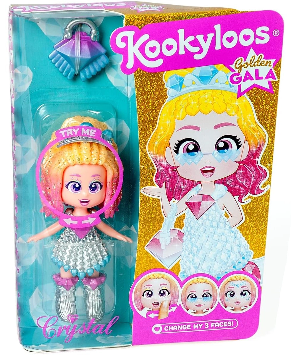Figurka KookyLoos Crystal Golden Gala spojuje zábavný, party styl s precizně zpracovanými detaily. Díky unikátní funkci změny výrazu tváře mohou děti snadno střídat nálady a vytvářet originální příběhy. Elegantní outfit, účes a doplňky ladí s tématem slavnostní gala akce.