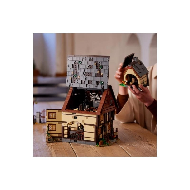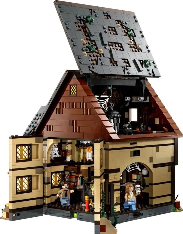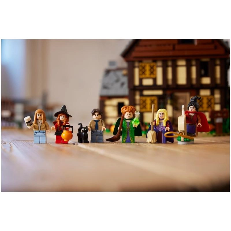 Objevte ikonickou chatku z filmu Disney Hokus pokus v podobě vysoce detailní stavebnice pro fanoušky i sběratele. Model se otevírá několika způsoby pro snadný přístup do interiéru: uvidíte muzejní obchůdek, čarodějnickou ložnici plnou netopýrů a kotlík se světelnou kostkou LEGO, která prosvítí oheň odspodu. Nechybí Kniha kouzel, postranní místnost pro uvěznění Dani a funkční vodní kolo s komínem, ze kterého při otáčení „stoupá“ růžový kouř.