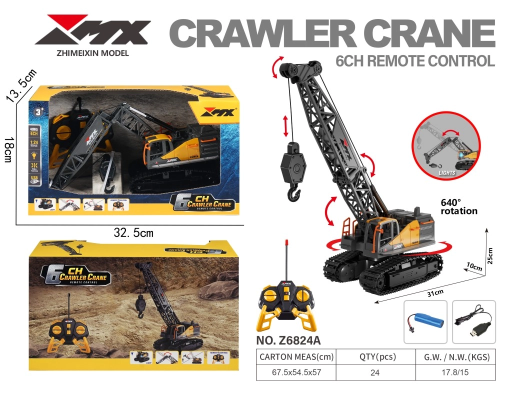 Objevte propracovaný RC drápový jeřáb v měřítku 1:24, který věrně napodobuje skutečný pásový stavební stroj. Nabízí plynulé ovládání jízdy vpřed/vzad, otáčení vlevo/vpravo a detailní práci s ramenem – včetně ohybu kloubu a zdvihu háku. Stylové žluto‑černé provedení, světelné efekty a robustní pásy podtrhují realistický vzhled i funkce.