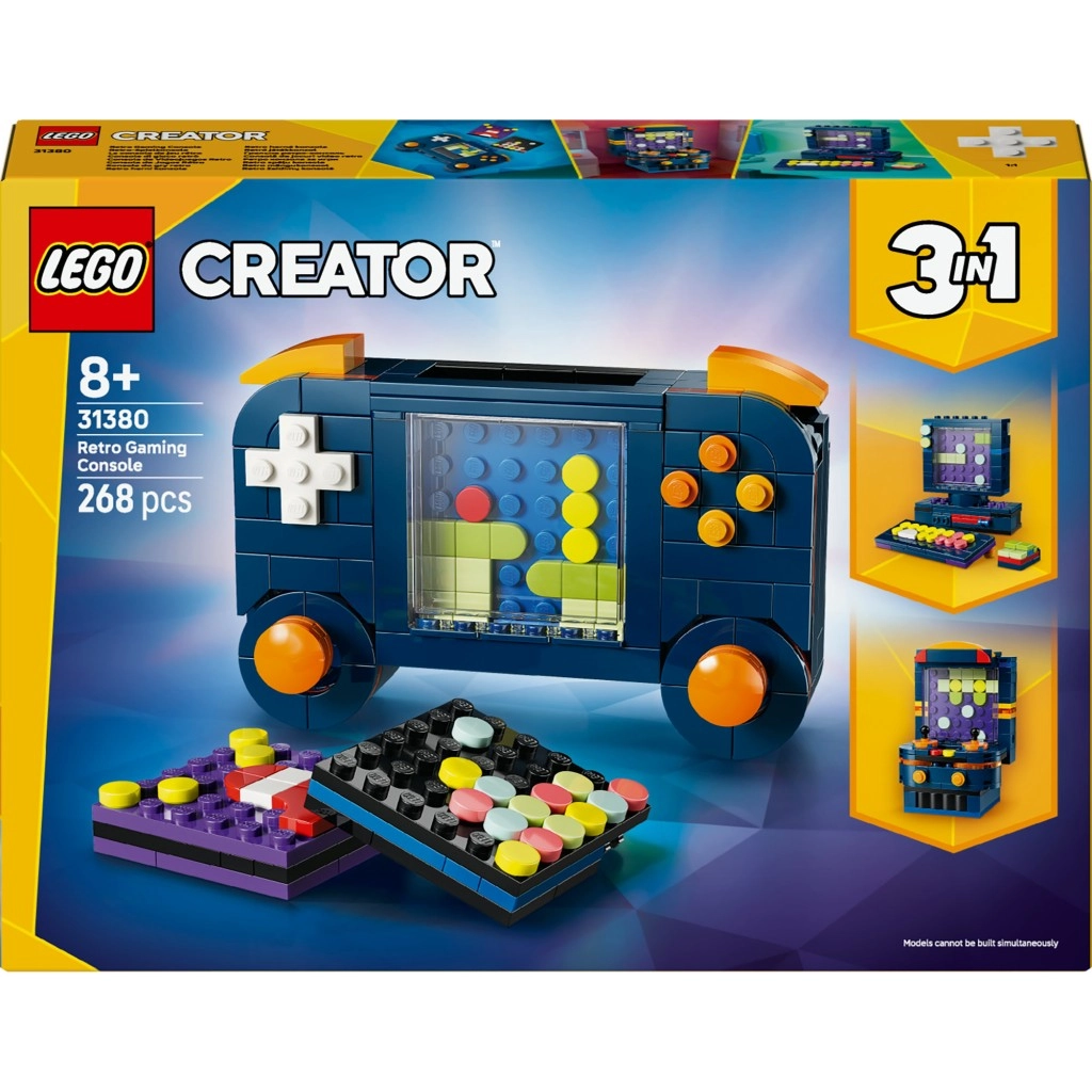 Díky konceptu 3v1 postavíte také mini stolní počítač s klávesnicí, monitorem a myší, nebo arkádový automat s autentickými ovládacími prvky. Stavebnice rozvíjí kreativitu, trpělivost a jemnou motoriku dětí a zároveň potěší jako originální dekorace do dětského pokoje.