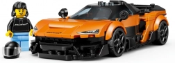 Model je inspirován skutečným superautem značky MCLAREN a nabízí funkční prvky pro autentický zážitek: nastavitelné zadní křídlo, zadní motor, kokpit s informačně‑zábavním displejem i přívody vzduchu na bocích a kapotě. Minifigurka řidiče v mikině McLaren a s helmou dotváří atmosféru závodního víkendu.