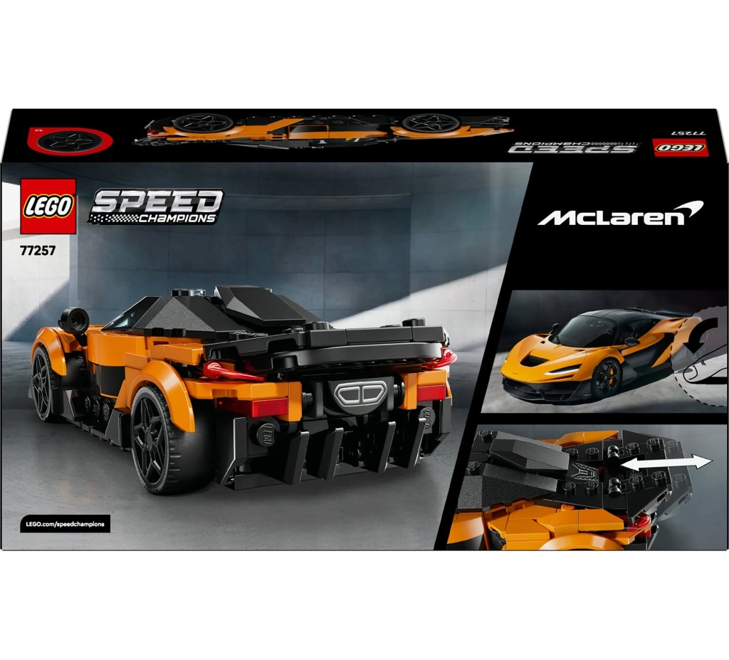 Užijte si kombinaci realistického designu a napínavého hraní se stavebnicí LEGO Speed Champions McLaren W1. Oranžovo‑černé barevné provedení, nízkoprofilové pneumatiky a detailní karoserie zaujmou na první pohled – ať už model vystavíte, nebo se vydáte na imaginární závodní trať. Díky aplikaci LEGO Builder můžete model přibližovat a otáčet ve 3D a sledovat srozumitelné návody krok za krokem.