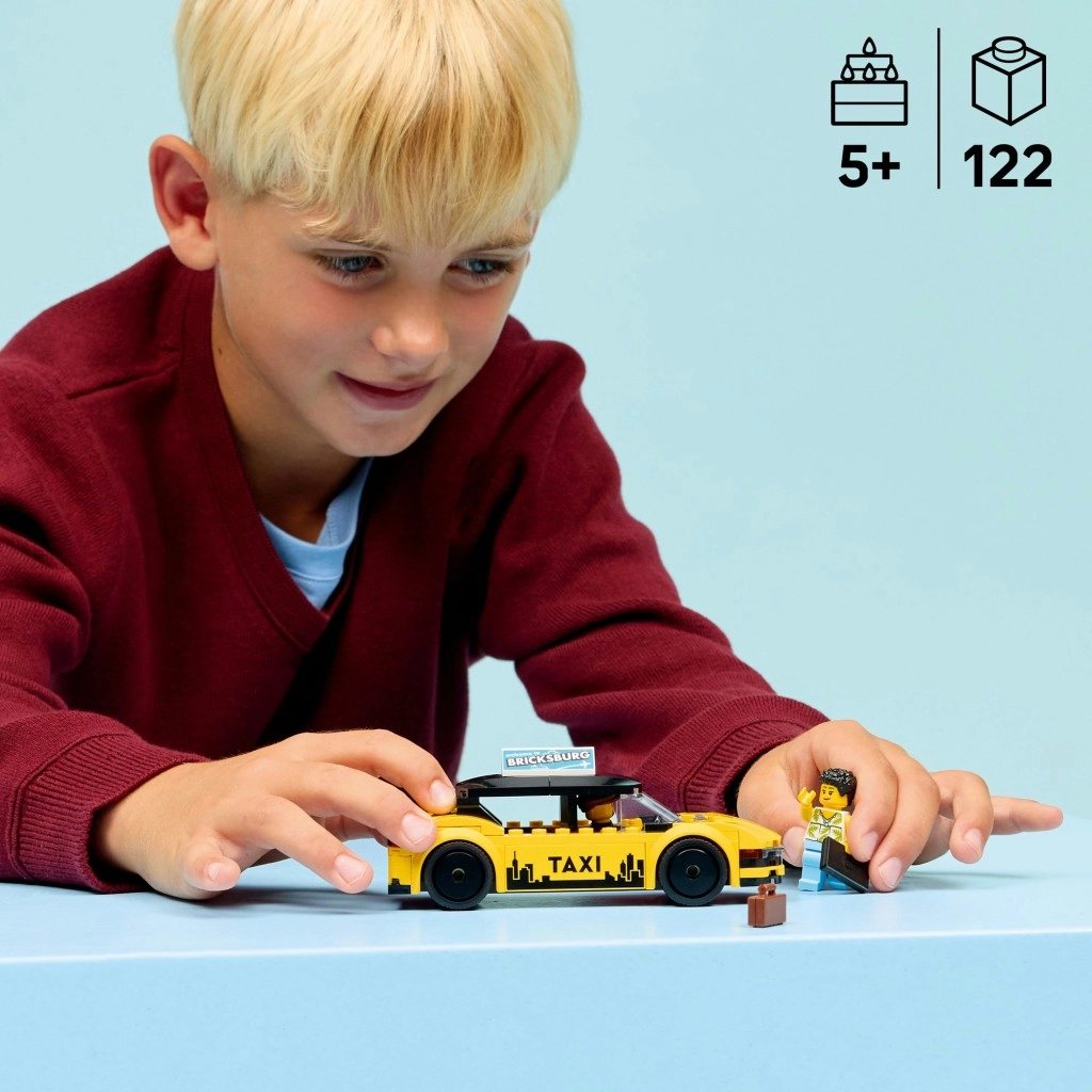 Se sadou LEGO City žlutý taxík děti od 5 let zažijí spoustu městských dobrodružství. Model nabízí moderní design, otevírací části a realistické detaily, včetně místa pro dvě minifigurky, odnímatelné střechy, otevíracího kufru a elektrického motoru pod kapotou. Skvěle se hodí jako dárek i pro rozšíření světa LEGO City.