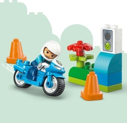 Objevte zábavnou a vzdělávací sadu LEGO DUPLO pro nejmenší: modrá policejní motorka s policistkou, dopravními kužely a jednoduchým doplňkem pro hru na silnici. Velké kostky jsou bezpečné a snadno uchopitelné, podporují jemnou motoriku, kreativitu i učení pravidel silničního provozu formou hry.