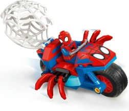 Stylová červeno-modrá motorka s pavoučími detaily a velkou bílou pavučinou pro parádní zadržení Rhina a dynamickou hru.